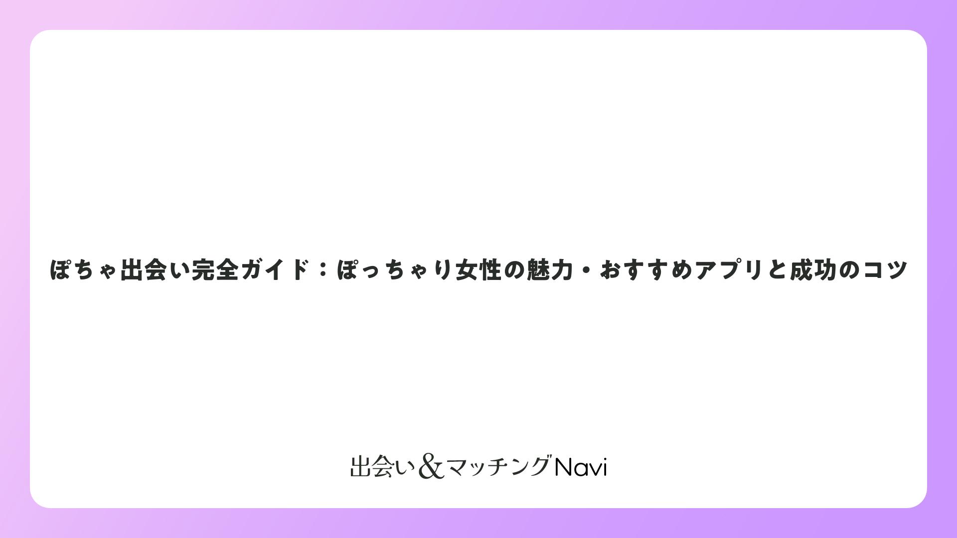 「ぽちゃ出会い」とは、ぽっちゃり体型の女性(通称「ぽちゃ」や「ミケポ」など)と出会うことを指し、近年マッチングアプリや出会い系サイトで注目されています。ぽっちゃり女性はその包容力や優しい雰囲気、そして自然体の魅力から多くの男性に支持されており、専用の出会いの場も増えています。本記事では、ぽちゃ出会いの意味や特徴、出会うための具体的な方法、そしてぽっちゃり女性の魅力について詳しく紹介します。