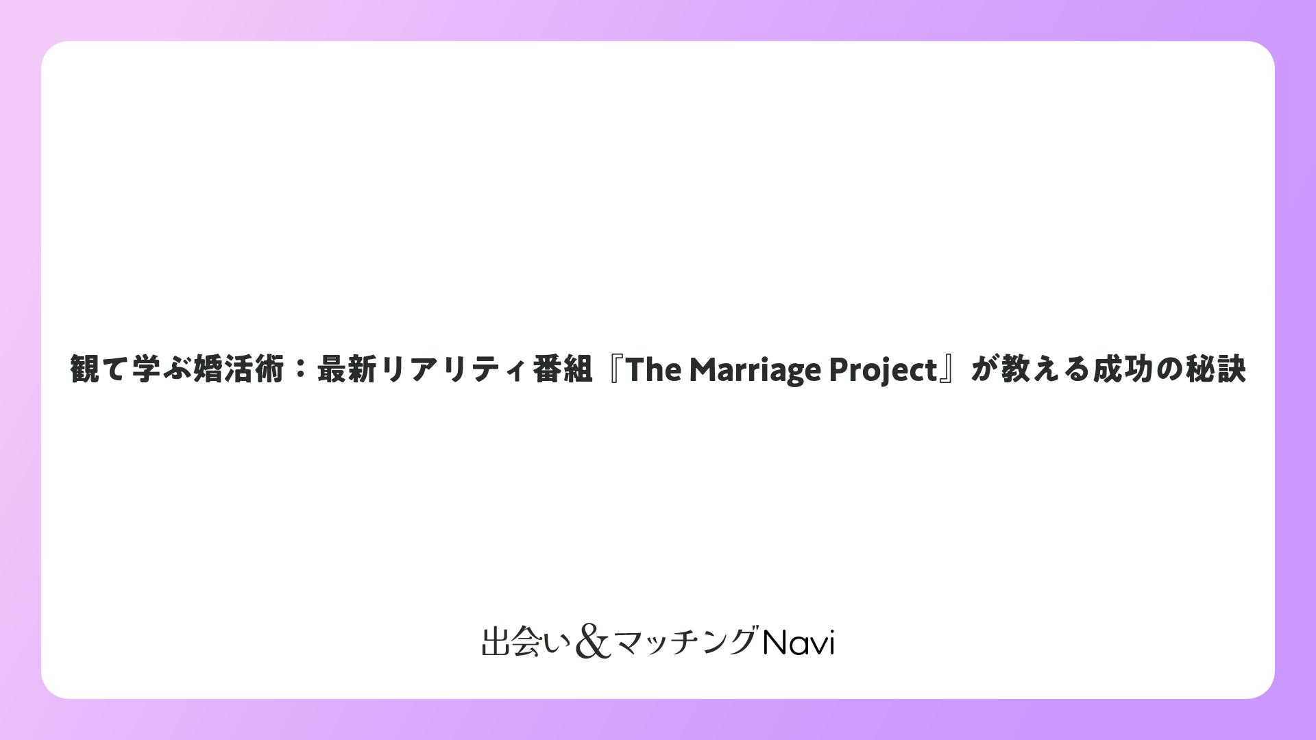 観て学ぶ婚活術:最新リアリティ番組『The Marriage Project』が教える成功の秘訣をまとめました