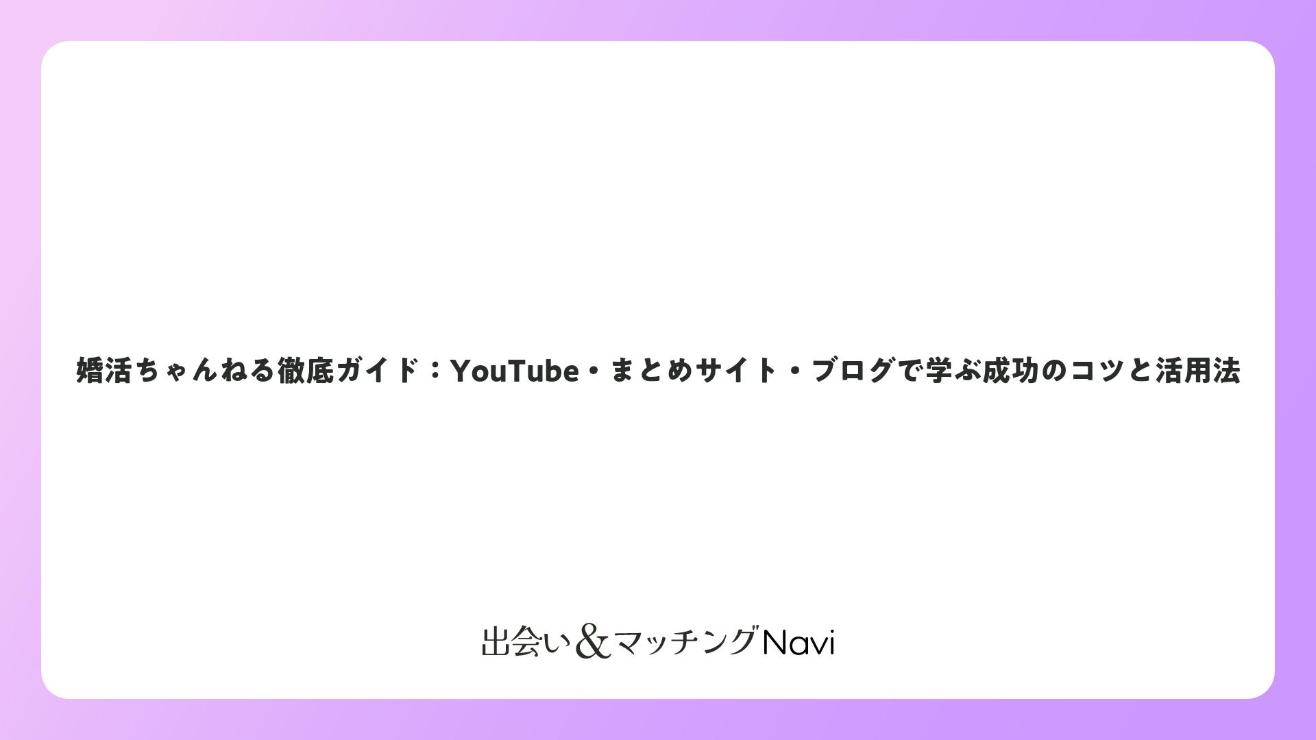 婚活ちゃんねる徹底ガイド:YouTube・まとめサイト・ブログで学ぶ成功のコツと活用法をまとめました