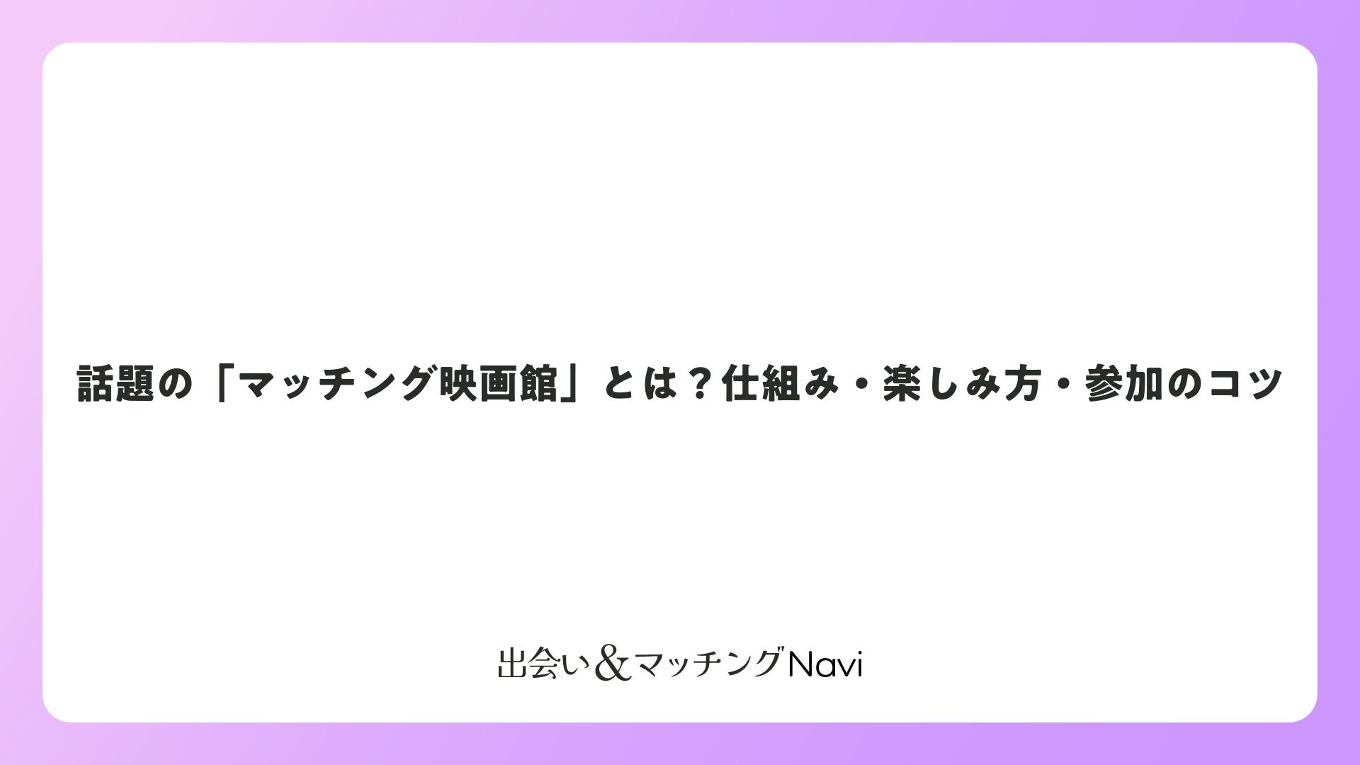 話題の「マッチング映画館」とは?仕組み・楽しみ方・参加のコツをまとめました