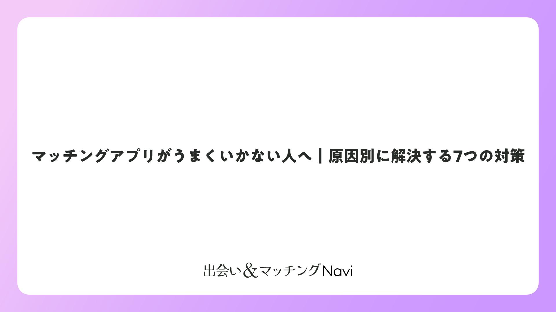 マッチングアプリがうまくいかない人へ|原因別に解決する7つの対策をまとめました