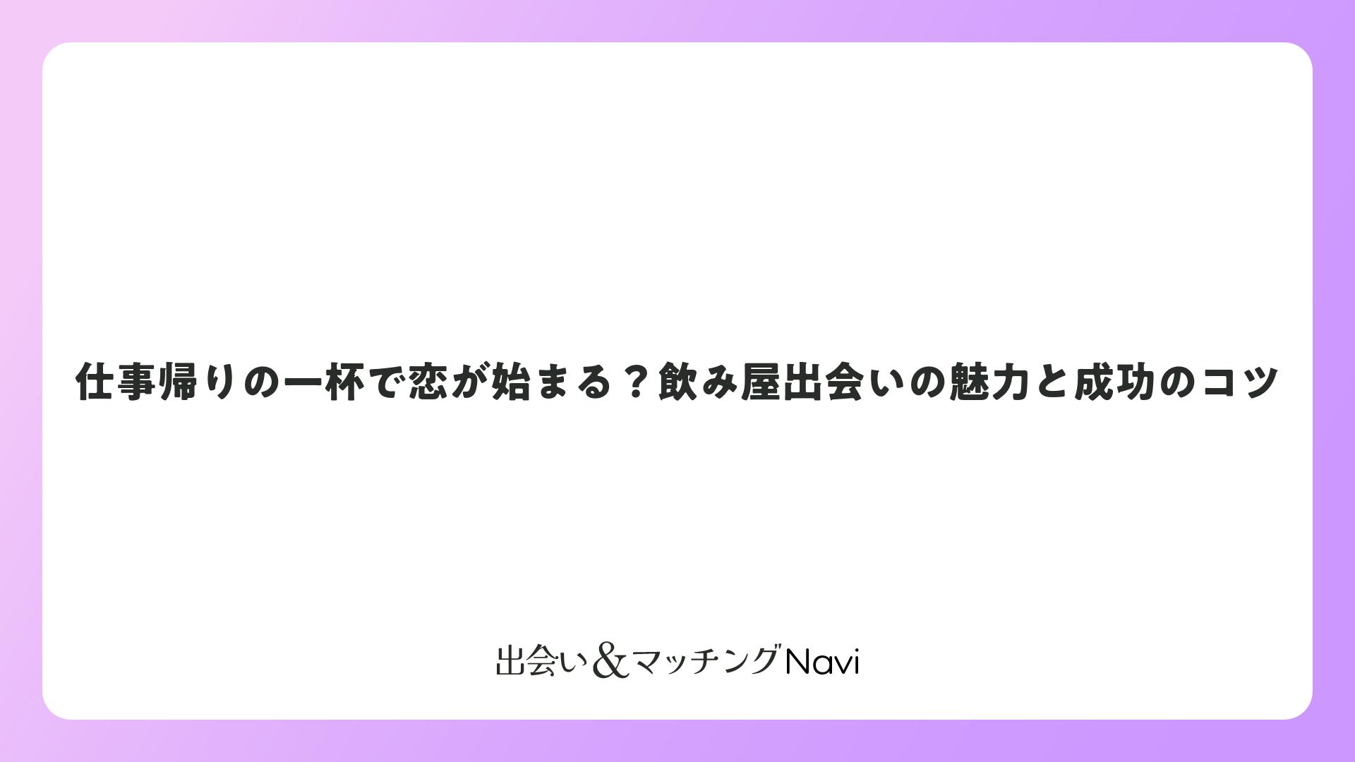 仕事帰りの一杯で恋が始まる?飲み屋出会いの魅力と成功のコツをまとめました