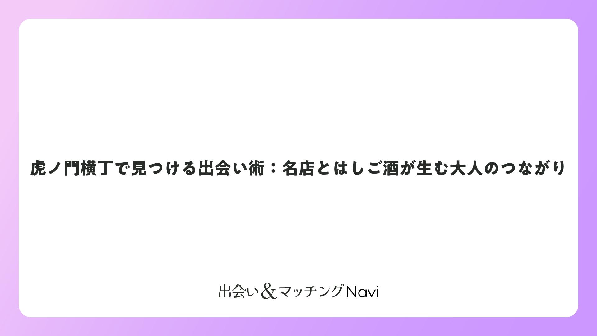 虎ノ門横丁で見つける出会い術:名店とはしご酒が生む大人のつながりをまとめました