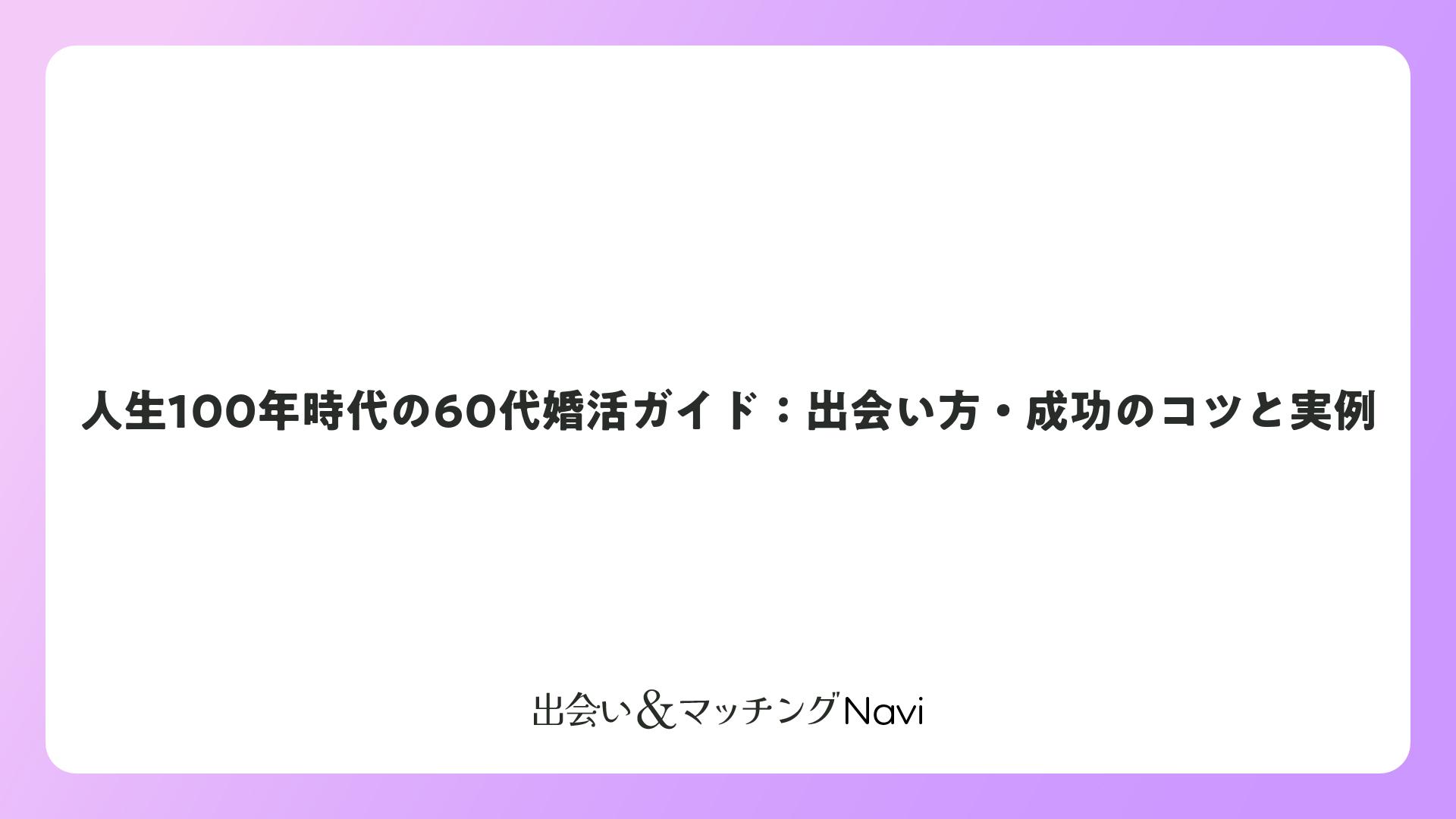 人生100年時代の60代婚活ガイド:出会い方・成功のコツと実例をまとめました