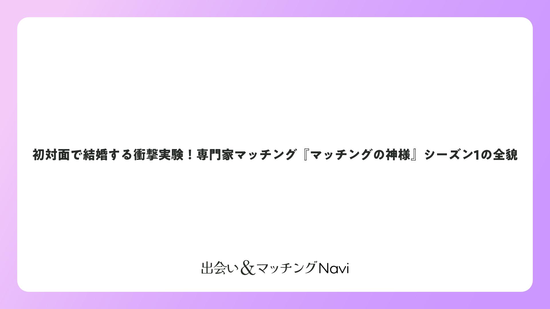 初対面で結婚する衝撃実験!専門家マッチング『マッチングの神様』シーズン1の全貌をまとめました