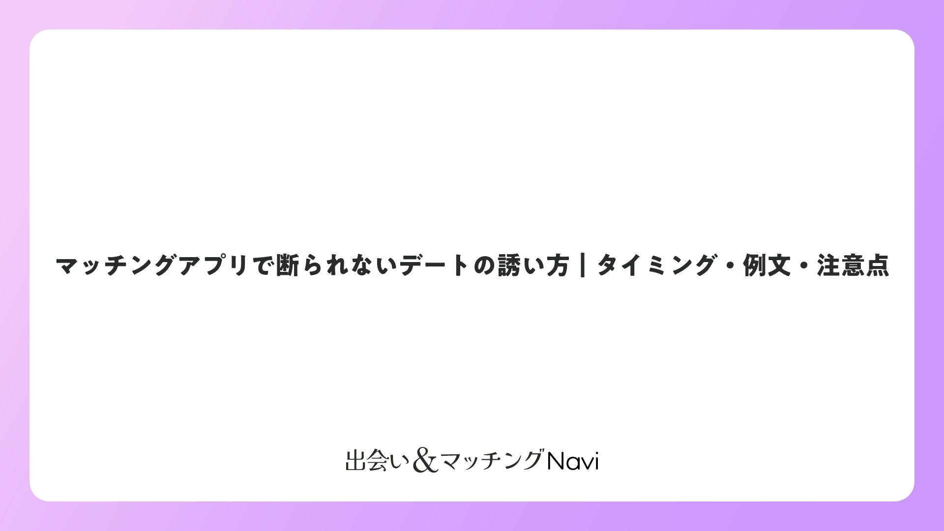 マッチングアプリで断られないデートの誘い方|タイミング・例文・注意点をまとめました