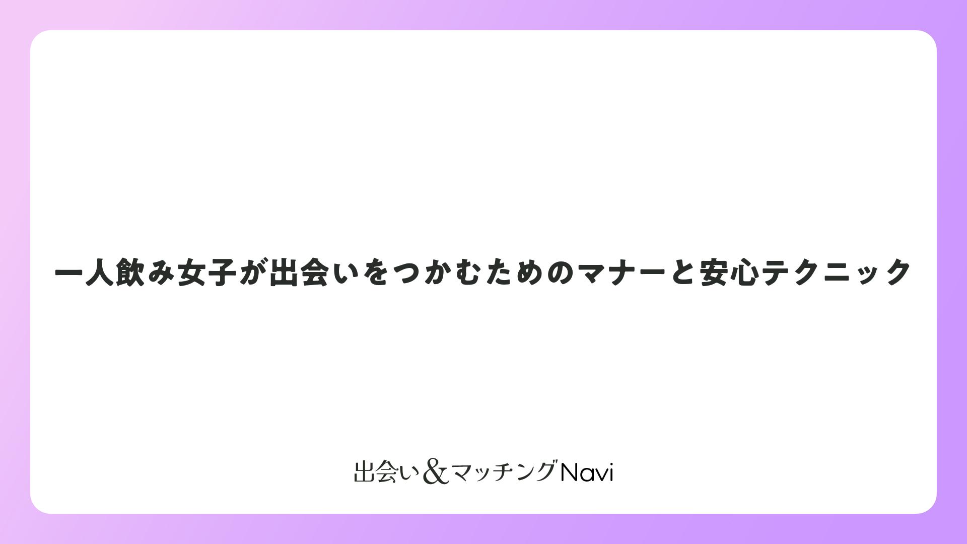 一人飲み女子が出会いをつかむためのマナーと安心テクニックをまとめました