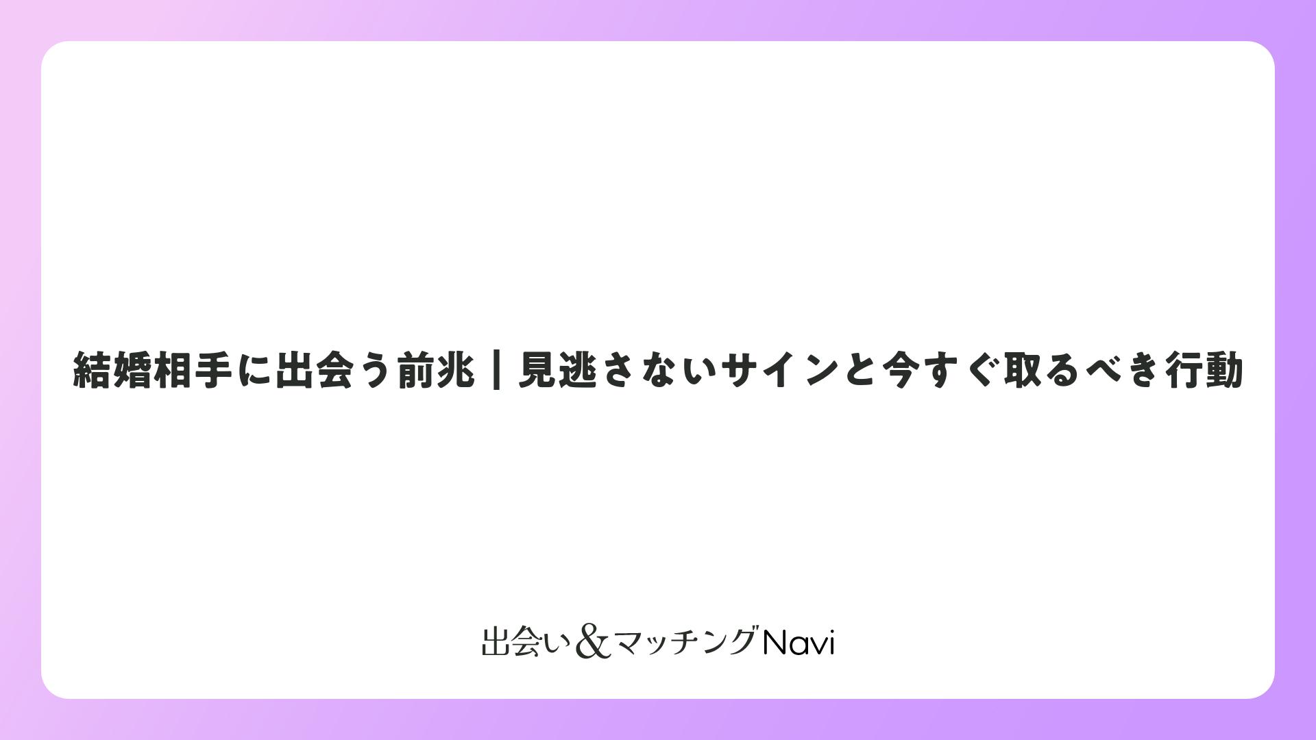 この記事では、**結婚相手に出会う前に現れやすい前兆(サイン)**を多方面の情報を基に分かりやすく解説します。仕事や生活の変化、心の内面の変化、人間関係の動きなど、実際に多くの婚活・恋愛関連メディアやカウンセリング、結婚相談所の情報に共通して挙げられるポイントを整理して紹介します。読者が自分の状況を客観的に見直し、前向きに行動できるように構成しています。