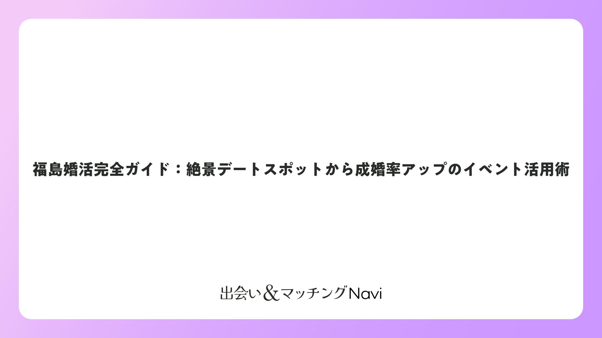福島婚活完全ガイド:絶景デートスポットから成婚率アップのイベント活用術をまとめました