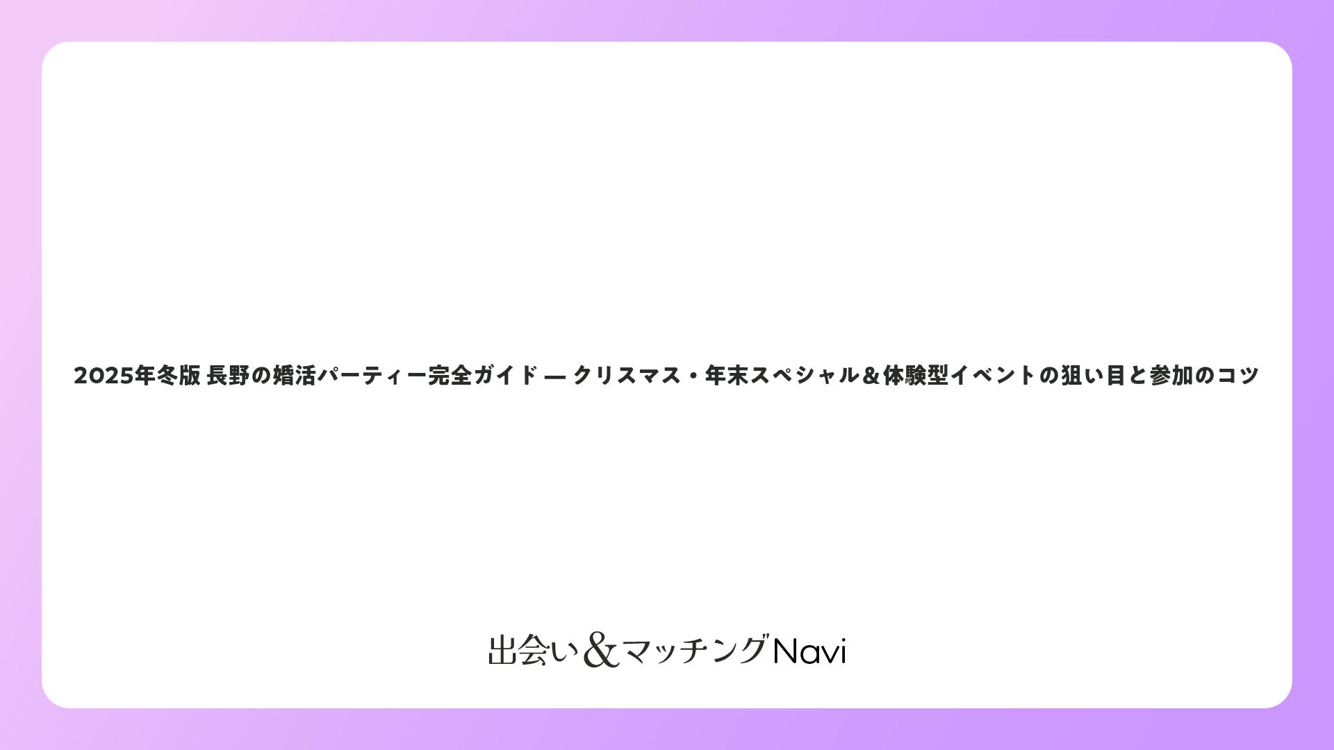 2025年冬版 長野の婚活パーティー完全ガイド — クリスマス・年末スペシャル&体験型イベントの狙い目と参加のコツをまとめました