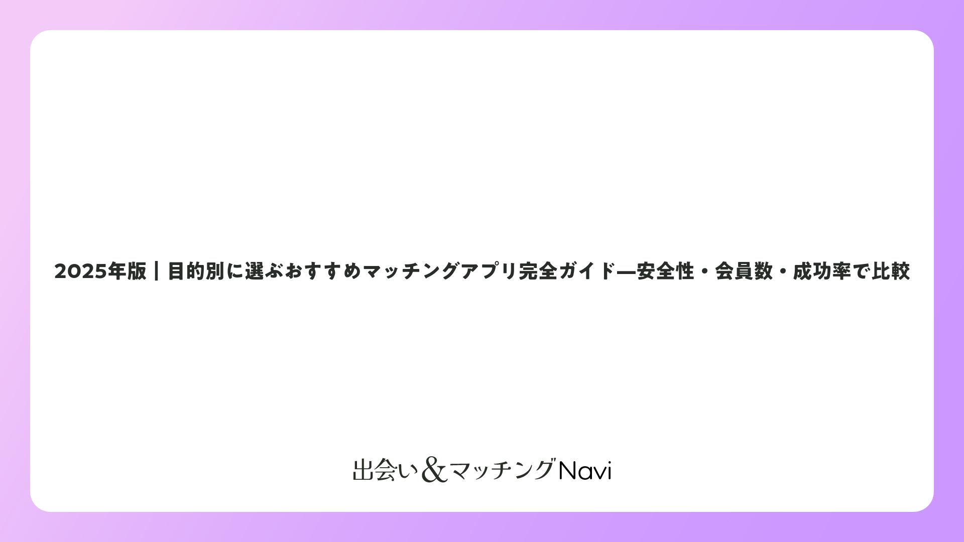 2025年版|目的別に選ぶおすすめマッチングアプリ完全ガイド—安全性・会員数・成功率で比較をまとめました