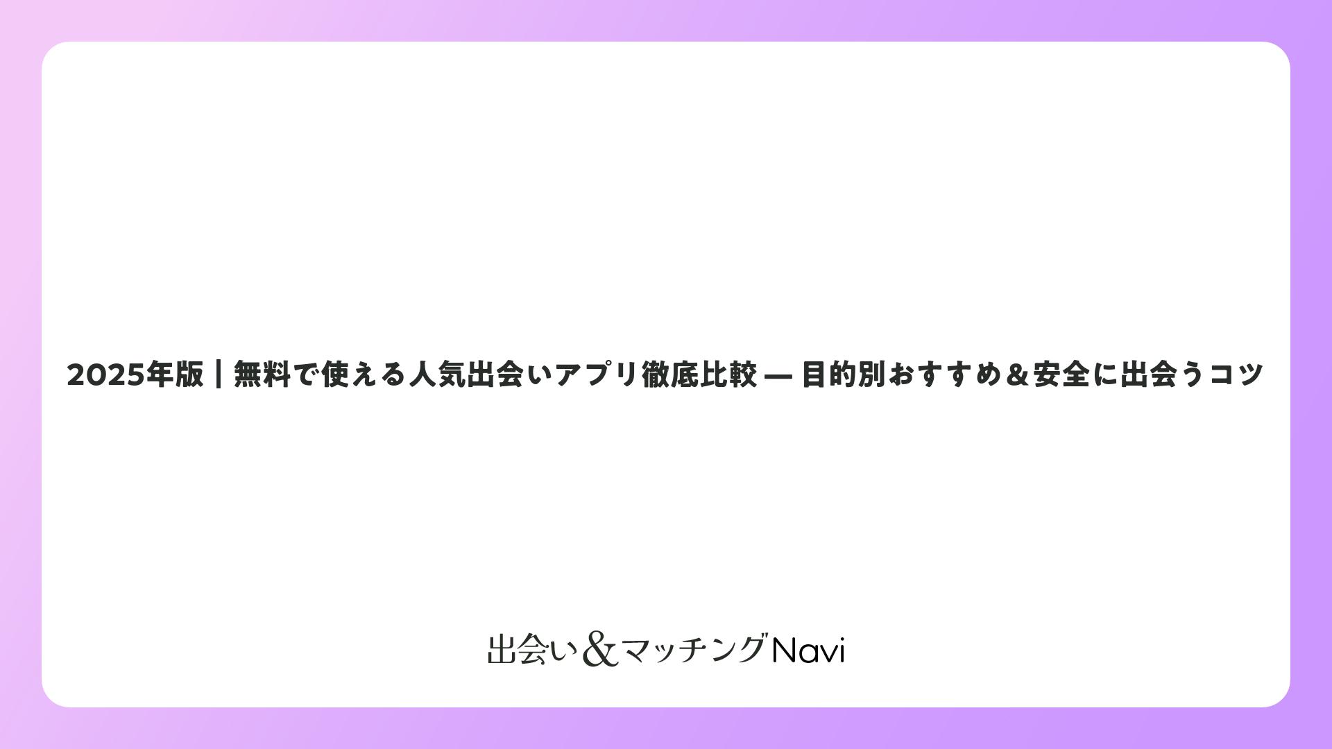 2025年版|無料で使える人気出会いアプリ徹底比較 — 目的別おすすめ&安全に出会うコツをまとめました