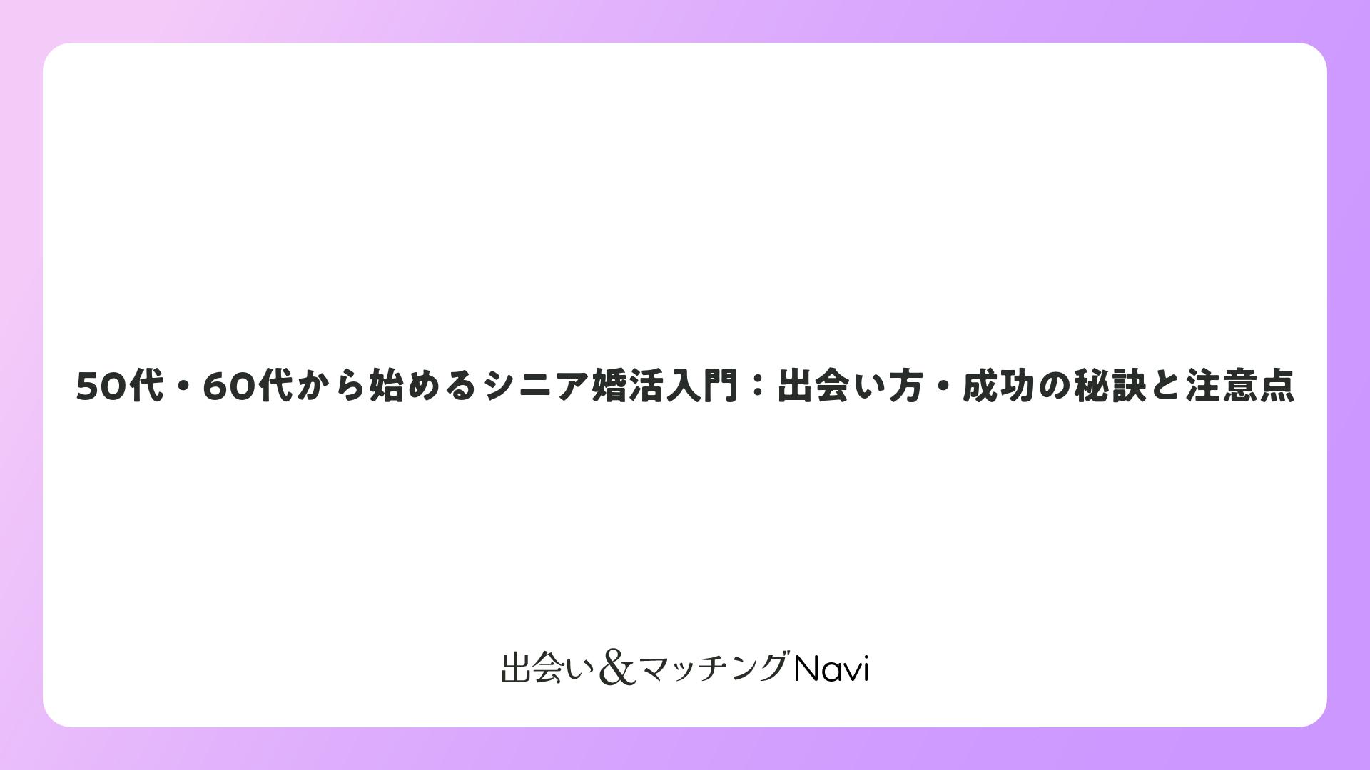 50代・60代から始めるシニア婚活入門:出会い方・成功の秘訣と注意点をまとめました