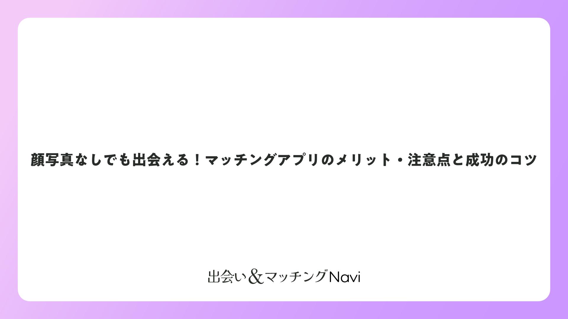 顔写真なしでも出会える!マッチングアプリのメリット・注意点と成功のコツをまとめました