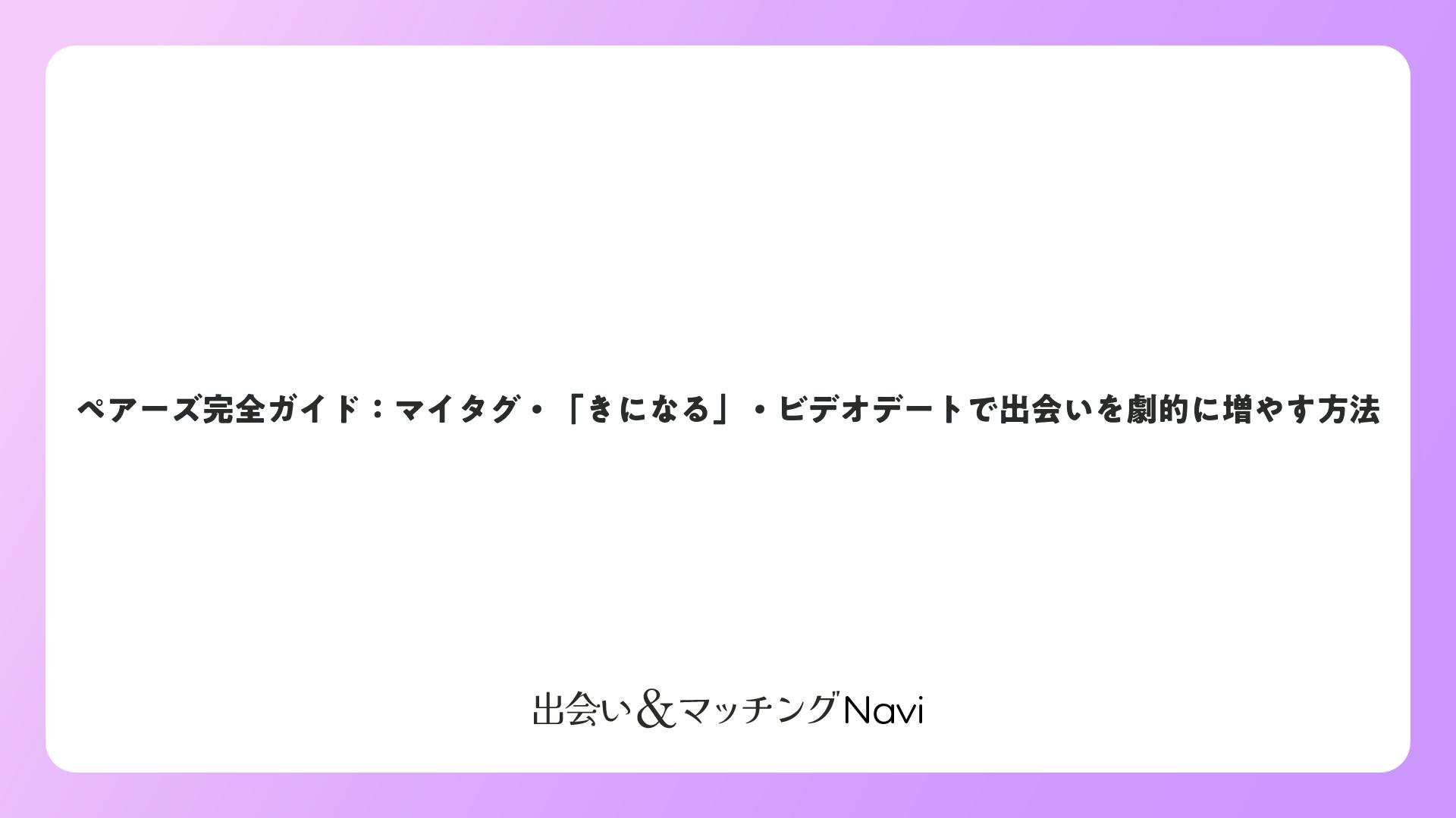 ペアーズ完全ガイド:マイタグ・「きになる」・ビデオデートで出会いを劇的に増やす方法をまとめました