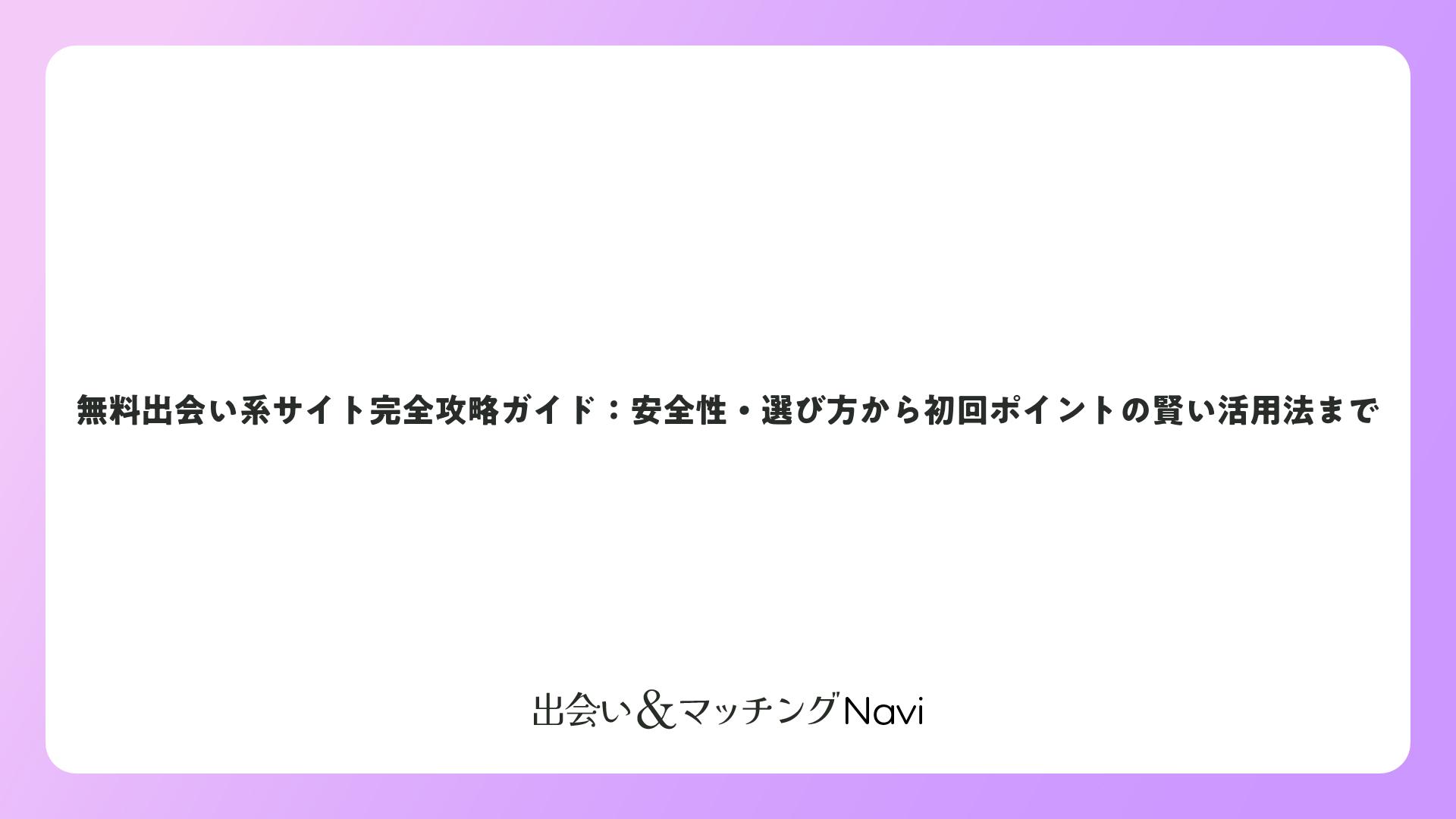 無料出会い系サイト完全攻略ガイド:安全性・選び方から初回ポイントの賢い活用法までをまとめました