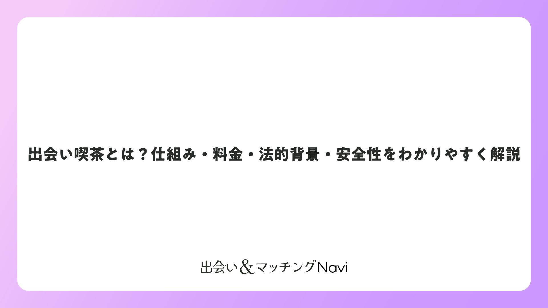 出会い喫茶とは?仕組み・料金・法的背景・安全性をわかりやすく解説をまとめました