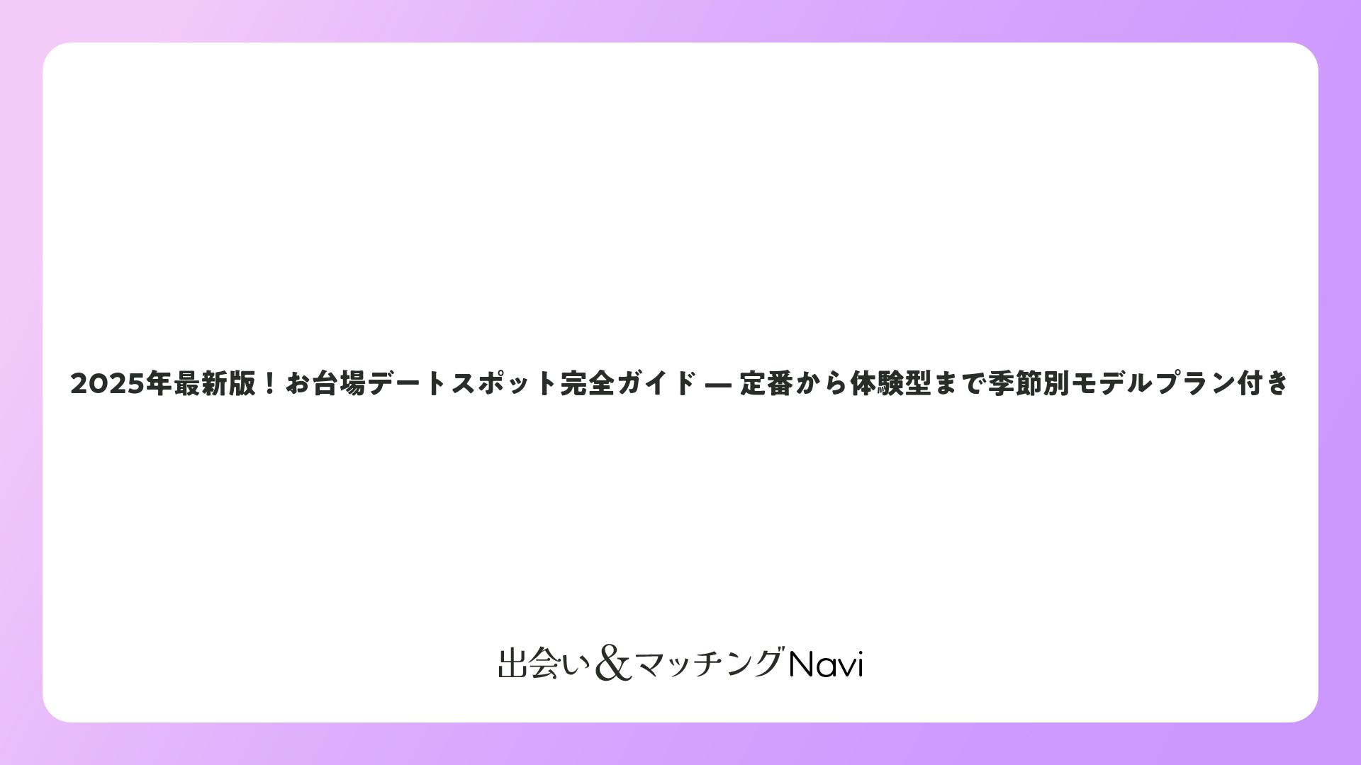 2025年最新版!お台場デートスポット完全ガイド — 定番から体験型まで季節別モデルプラン付きをまとめました