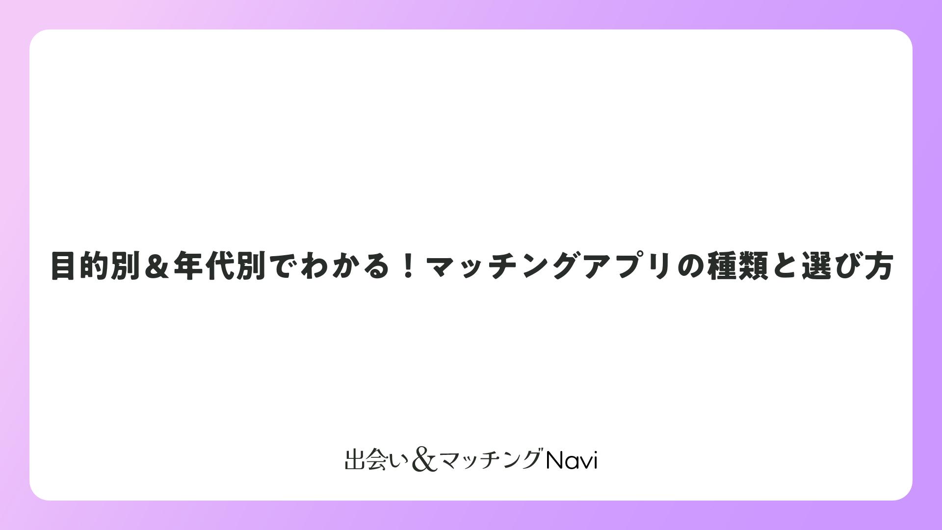 目的別&年代別でわかる!マッチングアプリの種類と選び方をまとめました