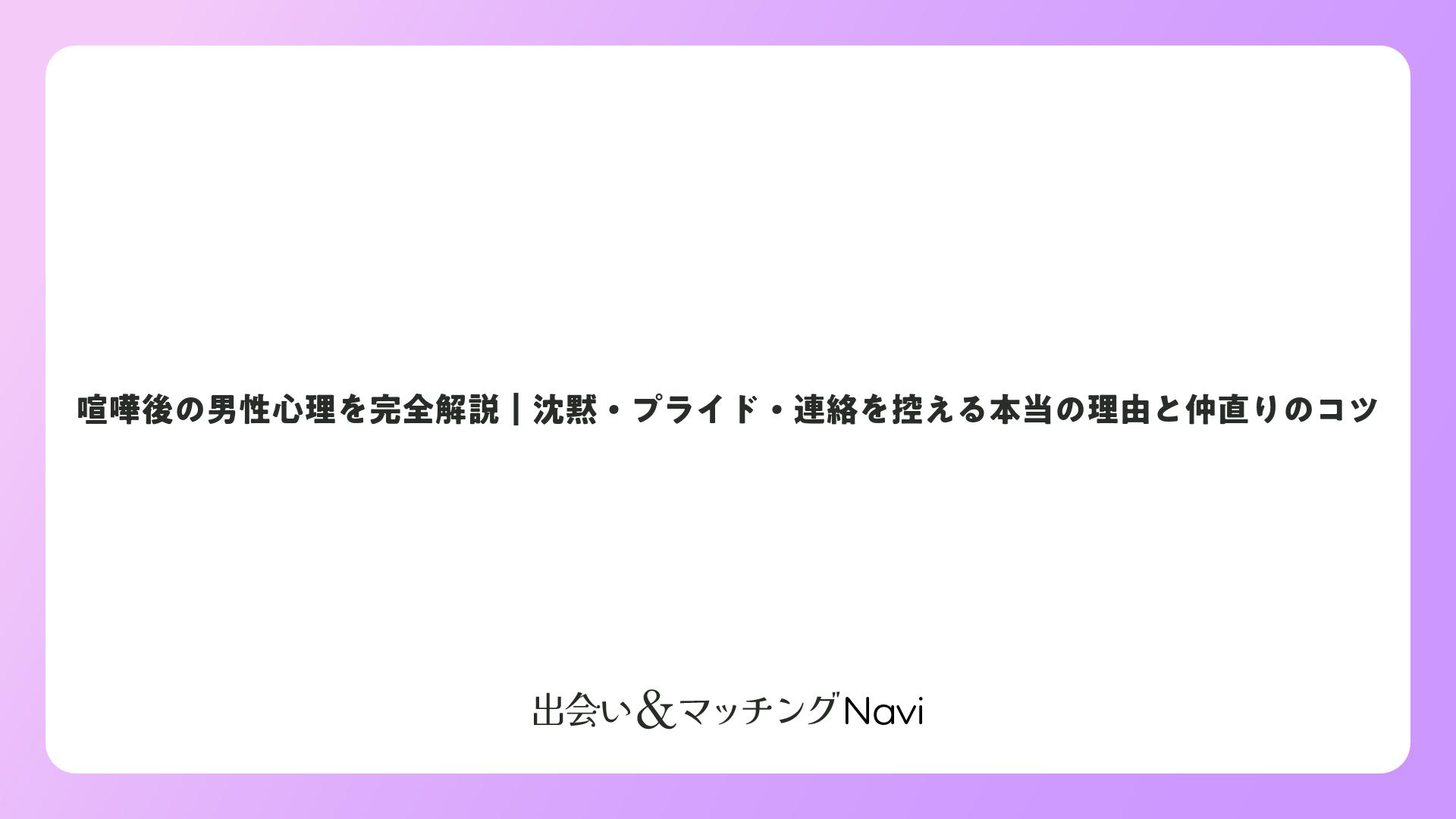 喧嘩後の男性心理を完全解説|沈黙・プライド・連絡を控える本当の理由と仲直りのコツをまとめました