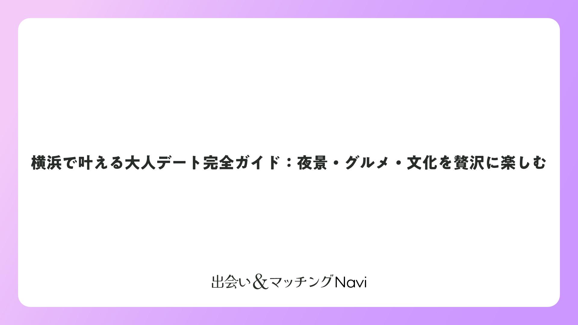 横浜は、大人のカップルが特別な時間を過ごすのに最適な街です。海沿いの美しい景観、異国情緒あふれる街並み、高級レストランやバー、そして文化施設など、大人が満足できるデートスポットが豊富に揃っています。本記事で紹介したスポットやプランを参考に、ふたりにとって最高のデートを計画してみてください。横浜での特別な時間は、カップルの絆をより深めるきっかけとなるでしょう。