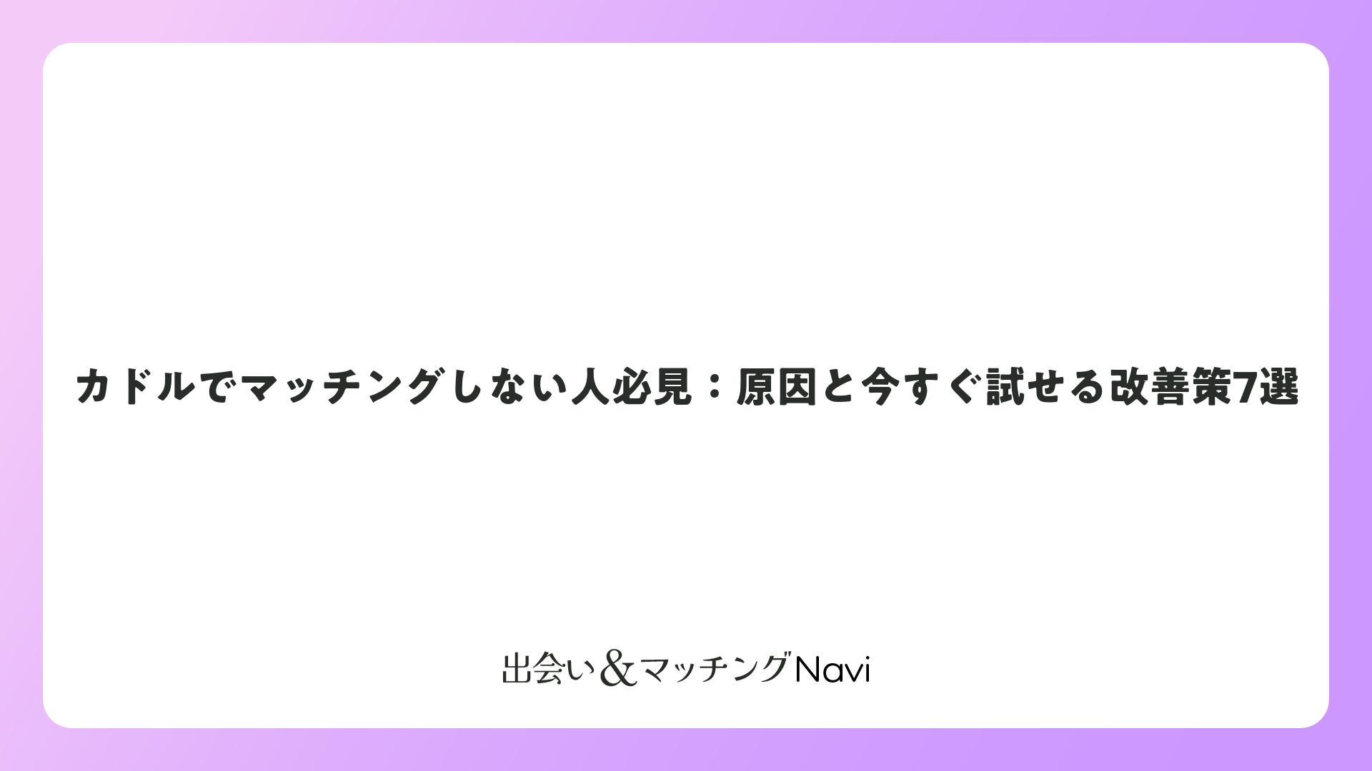 カドルでマッチングしない人必見:原因と今すぐ試せる改善策7選をまとめました