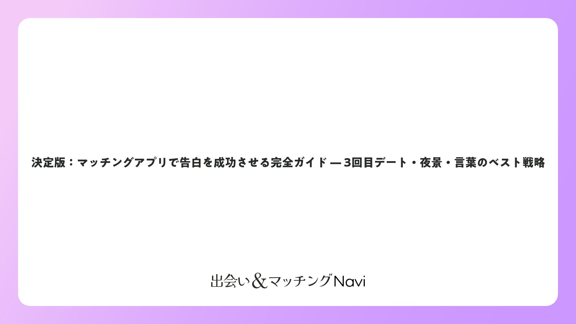 決定版:マッチングアプリで告白を成功させる完全ガイド — 3回目デート・夜景・言葉のベスト戦略をまとめました