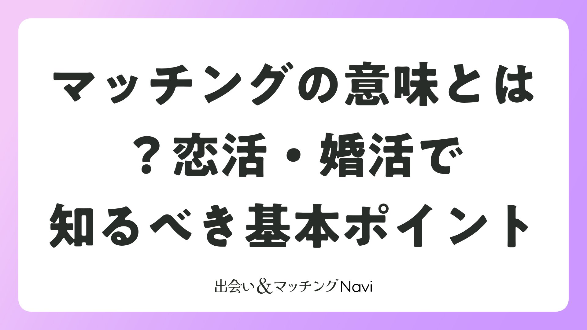 マッチングの意味とは?恋活・婚活で知るべき基本ポイントをまとめました