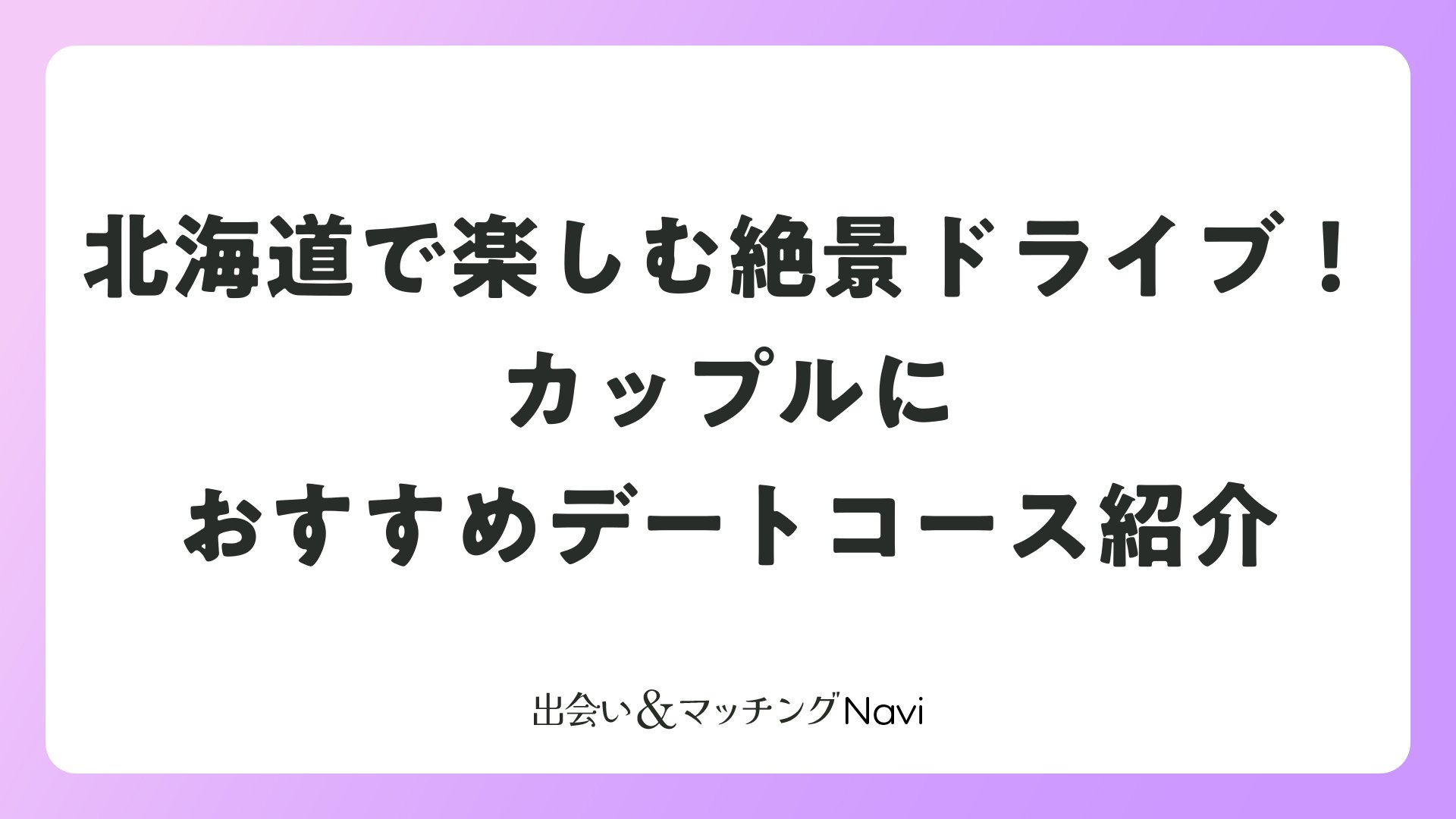 マッチングアプリで出会ったパートナーとの関係を深めたい、あるいは婚活中の相手との絆を強めたいと考えているなら、北海道でのデートドライブは最高の選択肢です。絶景を一緒に眺め、美味しい食事を一緒に味わい、温泉で疲れを癒やす。このような体験を通じて、二人の関係はより一層深まっていくでしょう。