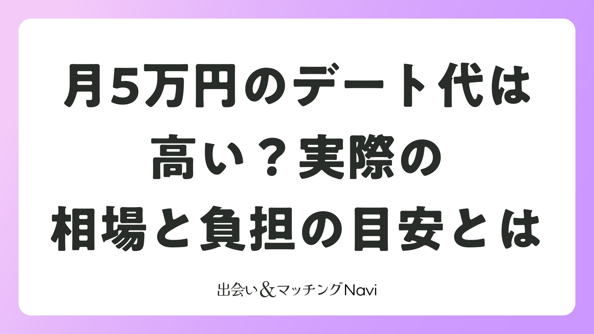 マッチングアプリで出会った相手とのデートにかかる費用は、恋愛を進める上で重要な要素です。特に「月5万円」というデート代について、実際のところはどうなのか、多くの利用者が気になるポイントではないでしょうか。本記事では、マッチングアプリ利用者のリアルなデート費用の実態を紐解き、月5万円のデート代が適切なのか、効率的な恋愛活動のための予算管理について詳しく解説します。