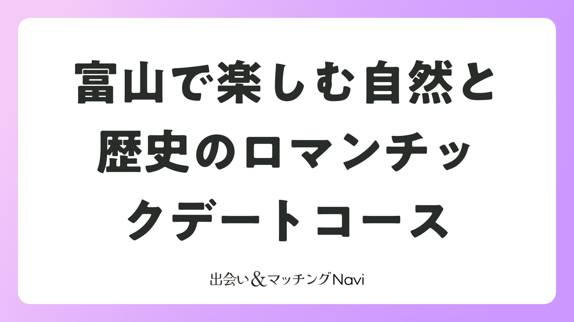 富山お出かけデートは、手軽さと感動のバランスが抜群。マッチングアプリの出会いをリアルに発展させる最高の舞台です。ぜひパートナーと訪れて、幸せな時間を刻んでください。