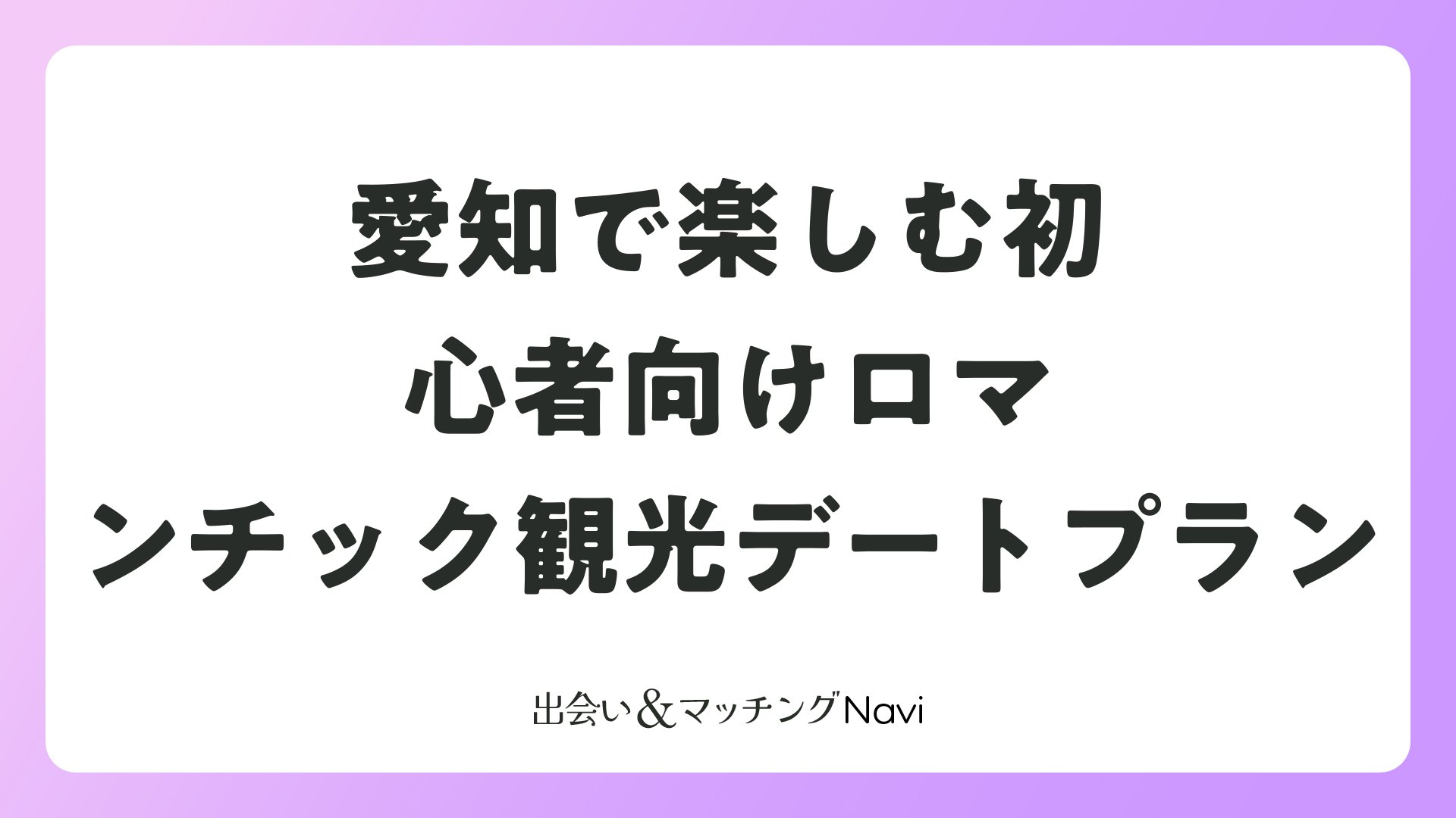 名古屋城の壮大さから恋路ヶ浜の穏やかさ、INAXミュージアムの創造性まで、愛知は恋愛を加速させる宝庫。季節を選ばず、雨の日も対応可能。まずは近場のスポットからチャレンジして、永遠の思い出を刻みましょう。あなたたちの幸せな未来が、ここから始まります。
