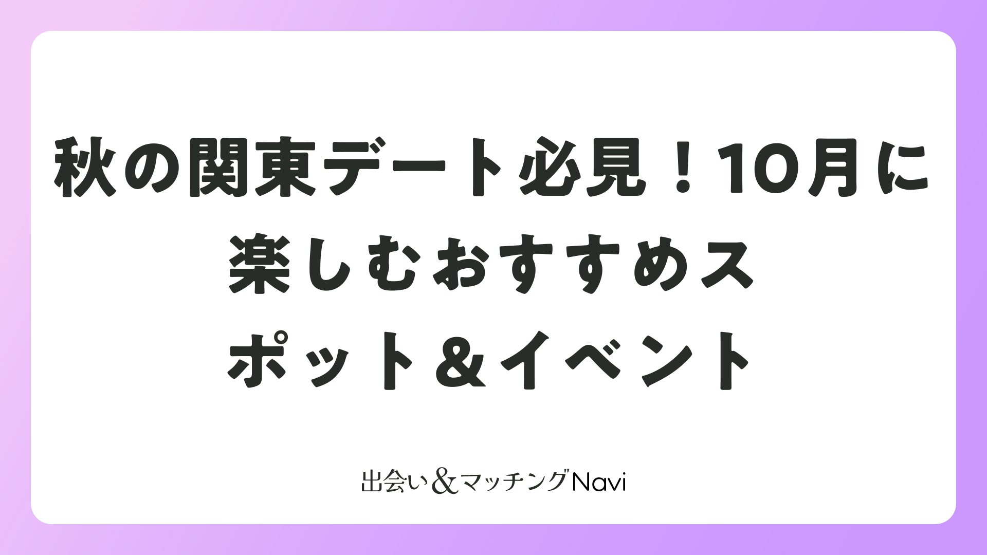 10月の関東は、イベント満載でマッチングアプリから生まれた関係を加速させる絶好の機会。紅葉、グルメ、ナイトムードを活かし、ポジティブなデートを楽しみましょう。