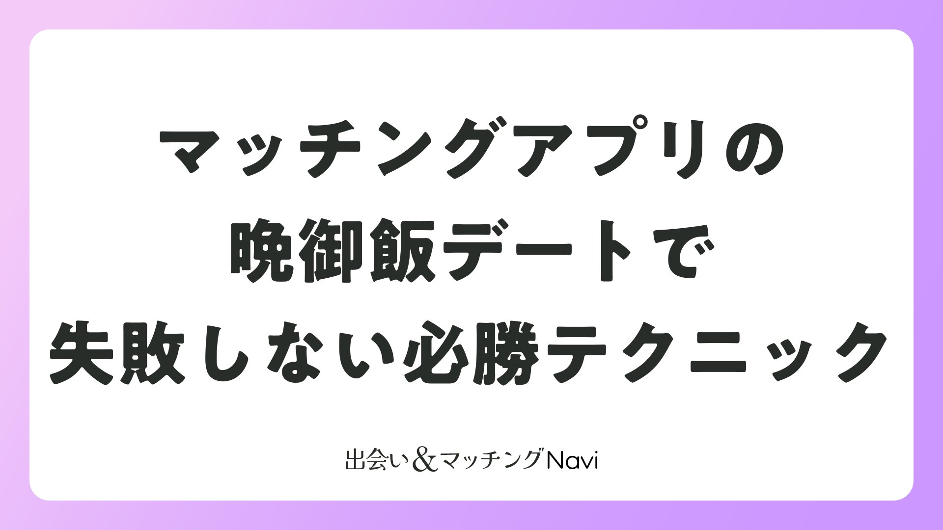 晩御飯デートはマッチングアプリの出会いを恋愛へ進化させる強力なツール。最適なお店選び、時間帯、会話、マナーで相手の心を掴み、次回への期待を高めましょう。ポジティブな姿勢で臨めば、素敵な関係が待っています。今日から実践して、幸せなディナータイムを!