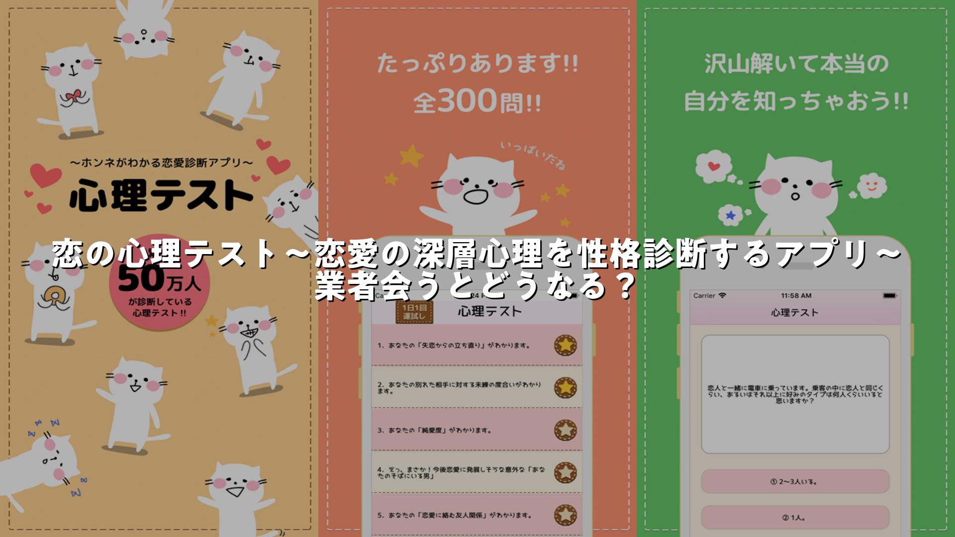 恋の心理テスト〜恋愛の深層心理を性格診断するアプリ〜の口コミ・業者会うとどうなる?ついてまとめました