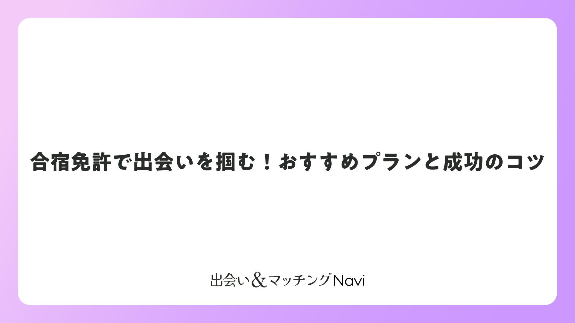 合宿免許で出会いを掴む!おすすめプランと成功のコツ