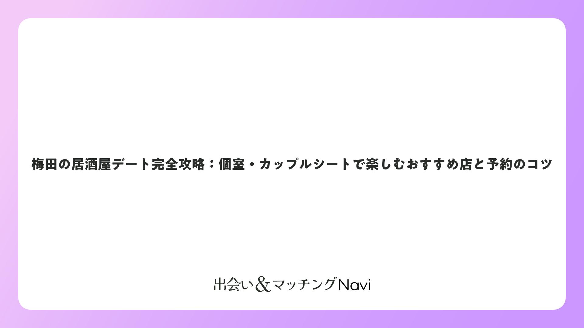 梅田の居酒屋デート完全攻略:個室・カップルシートで楽しむおすすめ店と予約のコツをまとめました
