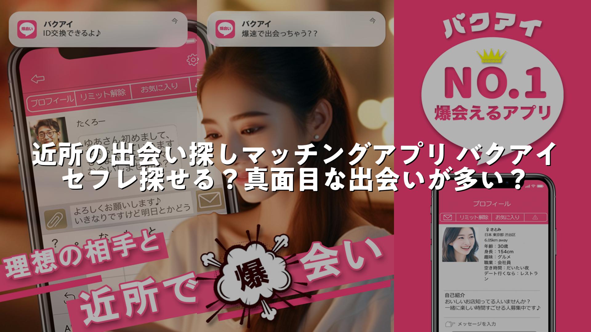 近所の出会い探しマッチングアプリ バクアイ セフレ探せる?真面目な出会いが多い?アプリを調査