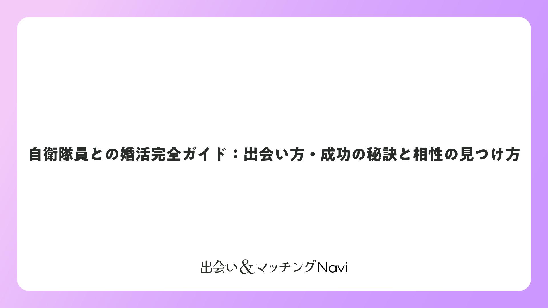 自衛隊員との婚活は、安定した生活基盤と信頼できるパートナーシップを求める多くの人にとって魅力的な選択肢です。多様な出会いの場や婚活支援を活用し、相手の勤務形態やライフスタイルを理解しながら、良好な関係を築くことが成功の鍵となります。