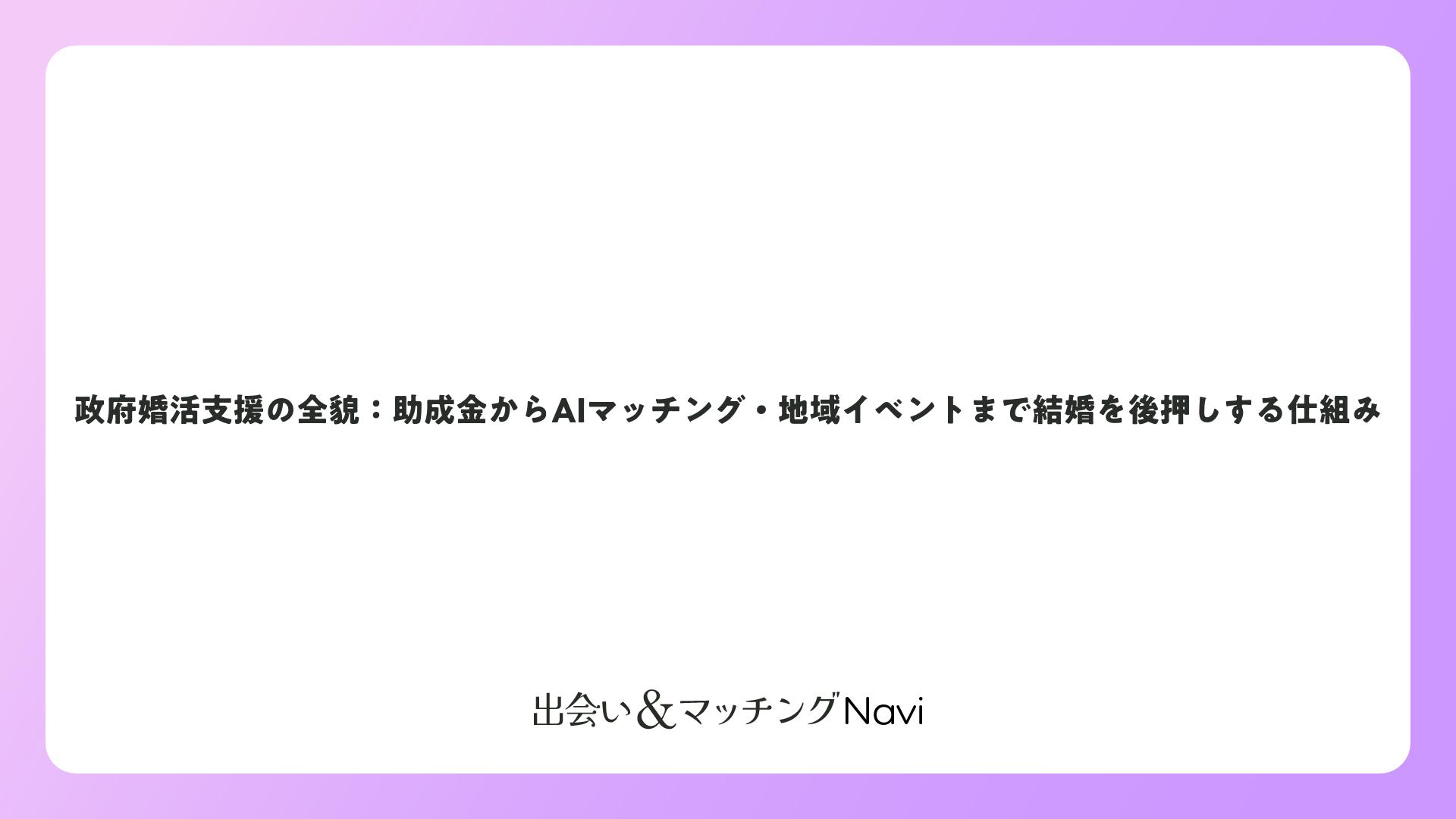 政府婚活支援の全貌:助成金からAIマッチング・地域イベントまで結婚を後押しする仕組みをまとめました