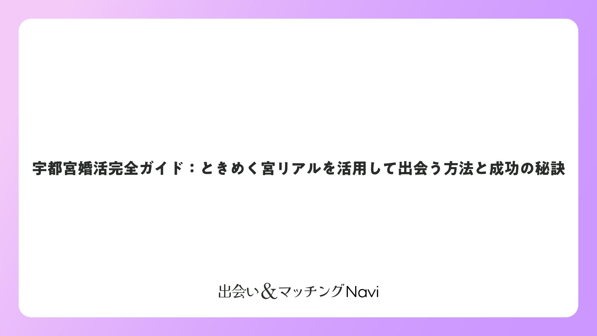 宇都宮婚活完全ガイド:ときめく宮リアルを活用して出会う方法と成功の秘訣