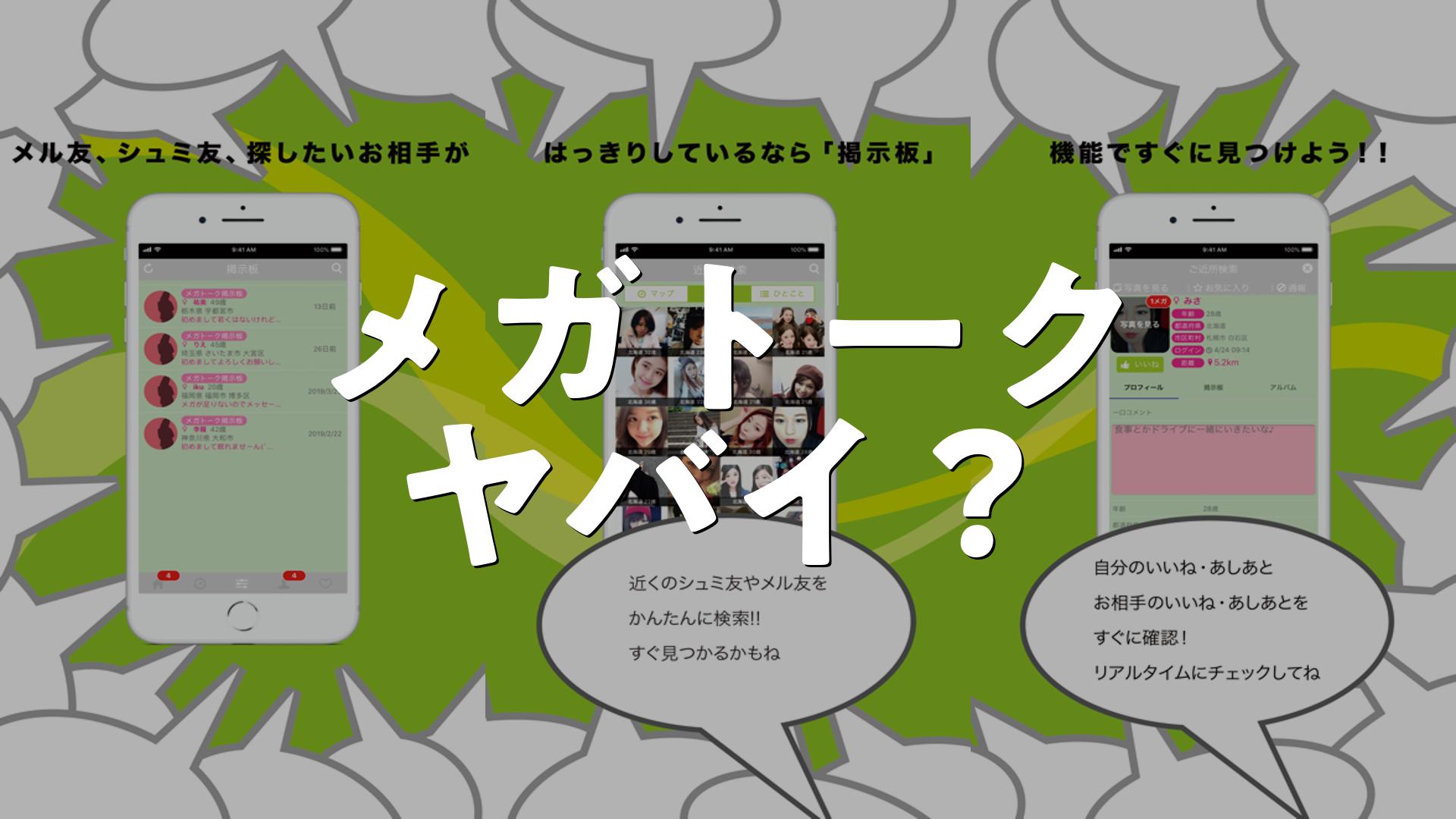 「メガトーク」は、趣味や地域をもとに気軽にチャットができる出会い系アプリです。ニックネームや地域・年齢など簡単なプロフィールを登録して、同じ趣味や近隣の相手とメッセージ交換ができます。ブロックや通報機能も備わっており、気軽にメル友作りや情報共有、ちょっとした会話相手を探したい人向けのサービスという位置づけです。