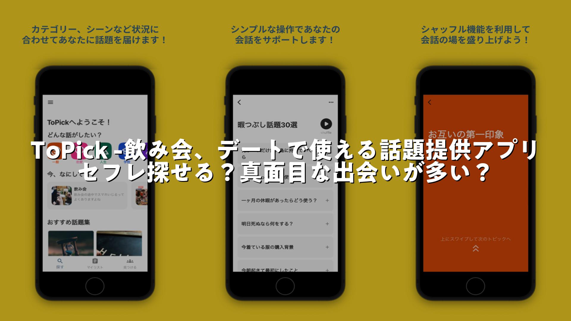ToPick -飲み会、デートで使える話題提供アプリの口コミ・セフレ探せる?真面目な出会いが多い?ついてまとめました