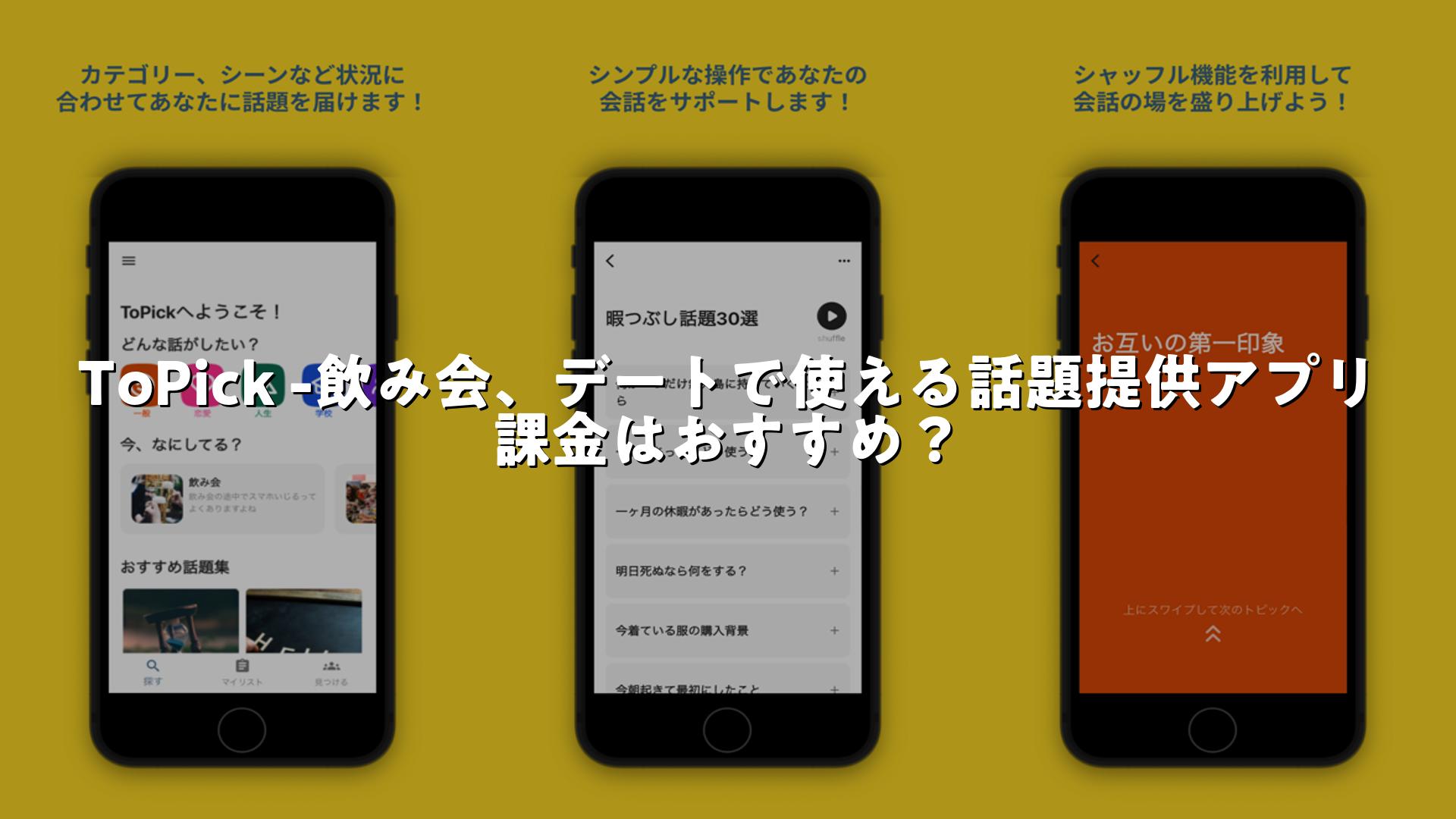 ToPick -飲み会、デートで使える話題提供アプリの口コミ・課金はおすすめ?ついてまとめました