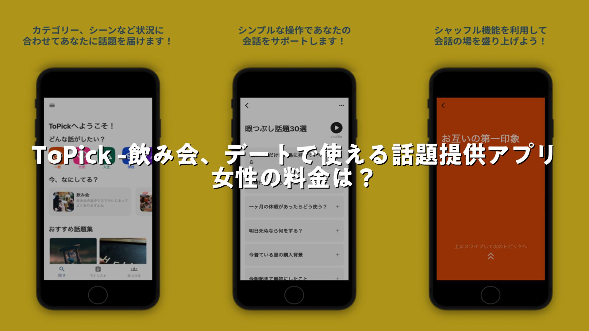 ToPick -飲み会、デートで使える話題提供アプリの口コミ・女性の料金は?ついてまとめました