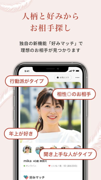 相性や細かい条件で検索できる機能があり、趣味や価値観を重視してじっくり相手を探したい人には向いています。