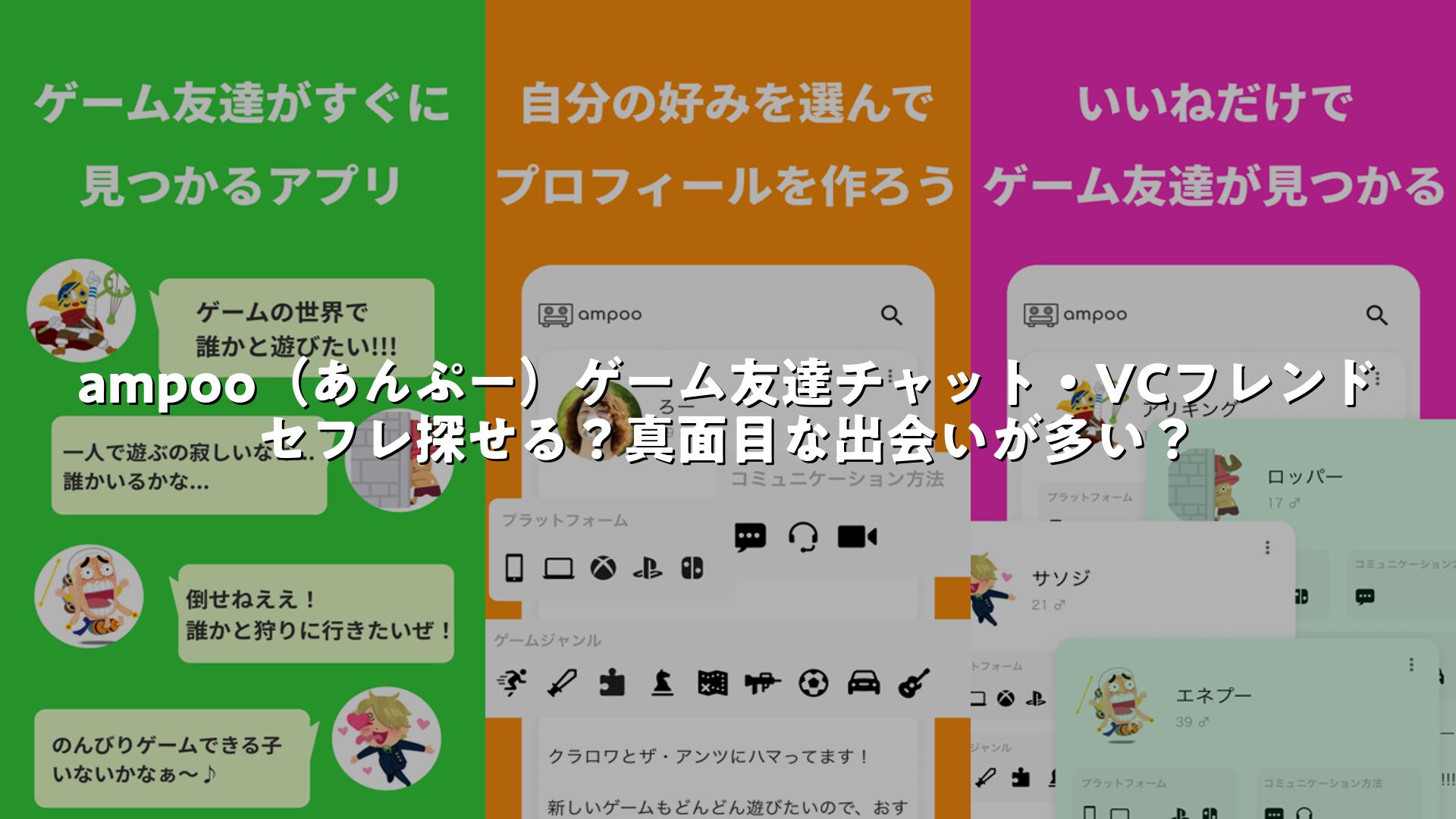 ampoo(あんぷー)ゲーム友達チャット・VCフレンドの口コミ・セフレ探せる?真面目な出会いが多い?ついてまとめました
