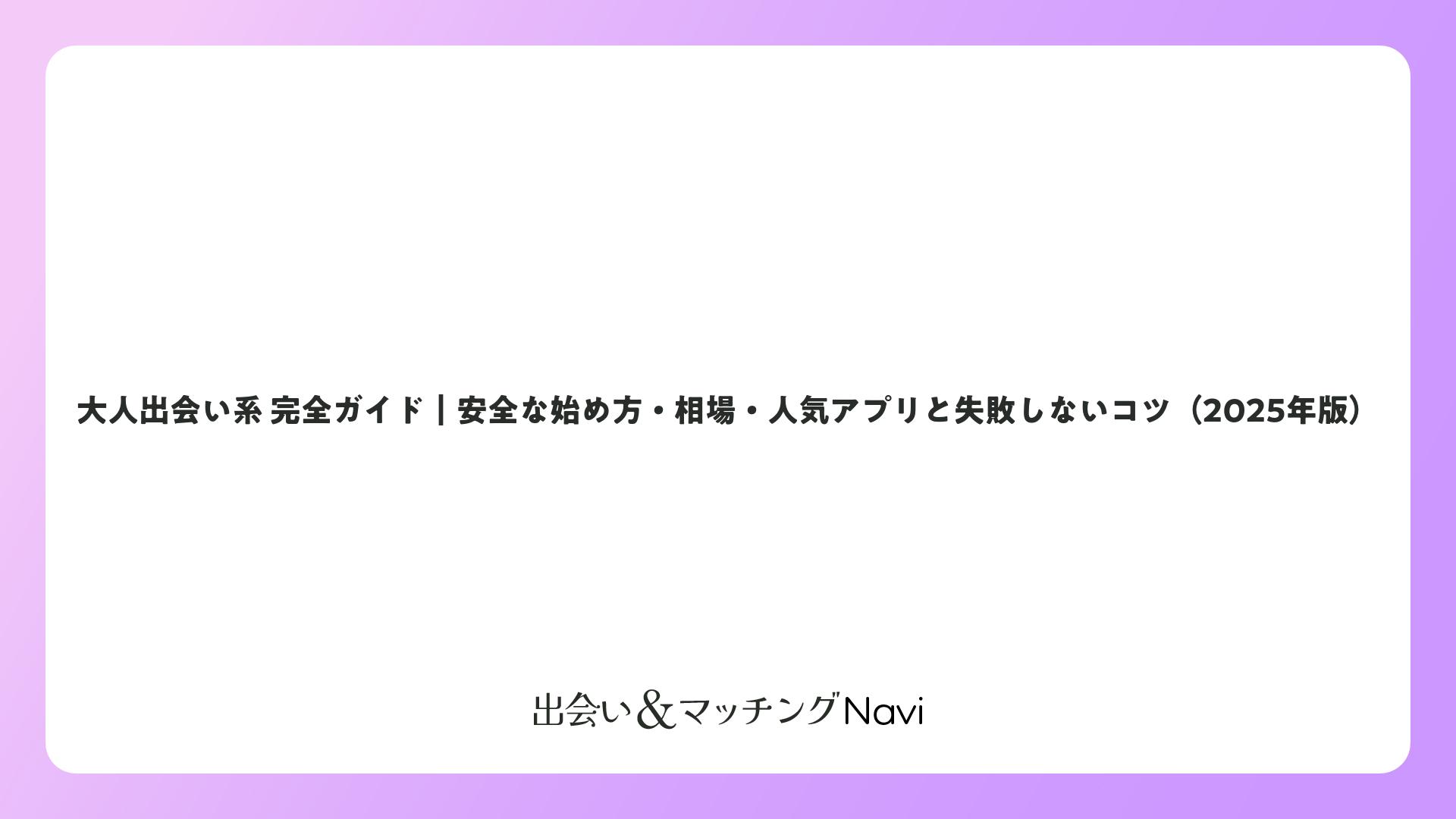 大人出会い系 完全ガイド|安全な始め方・相場・人気アプリと失敗しないコツ(2025年版)をまとめました