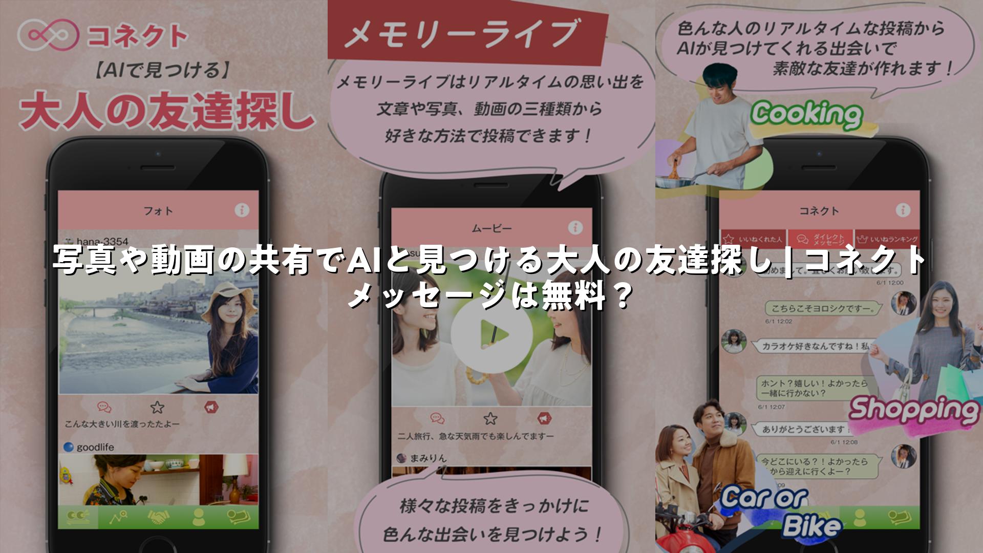 写真や動画の共有でAIと見つける大人の友達探し | コネクトの口コミ・メッセージは無料?ついてまとめました