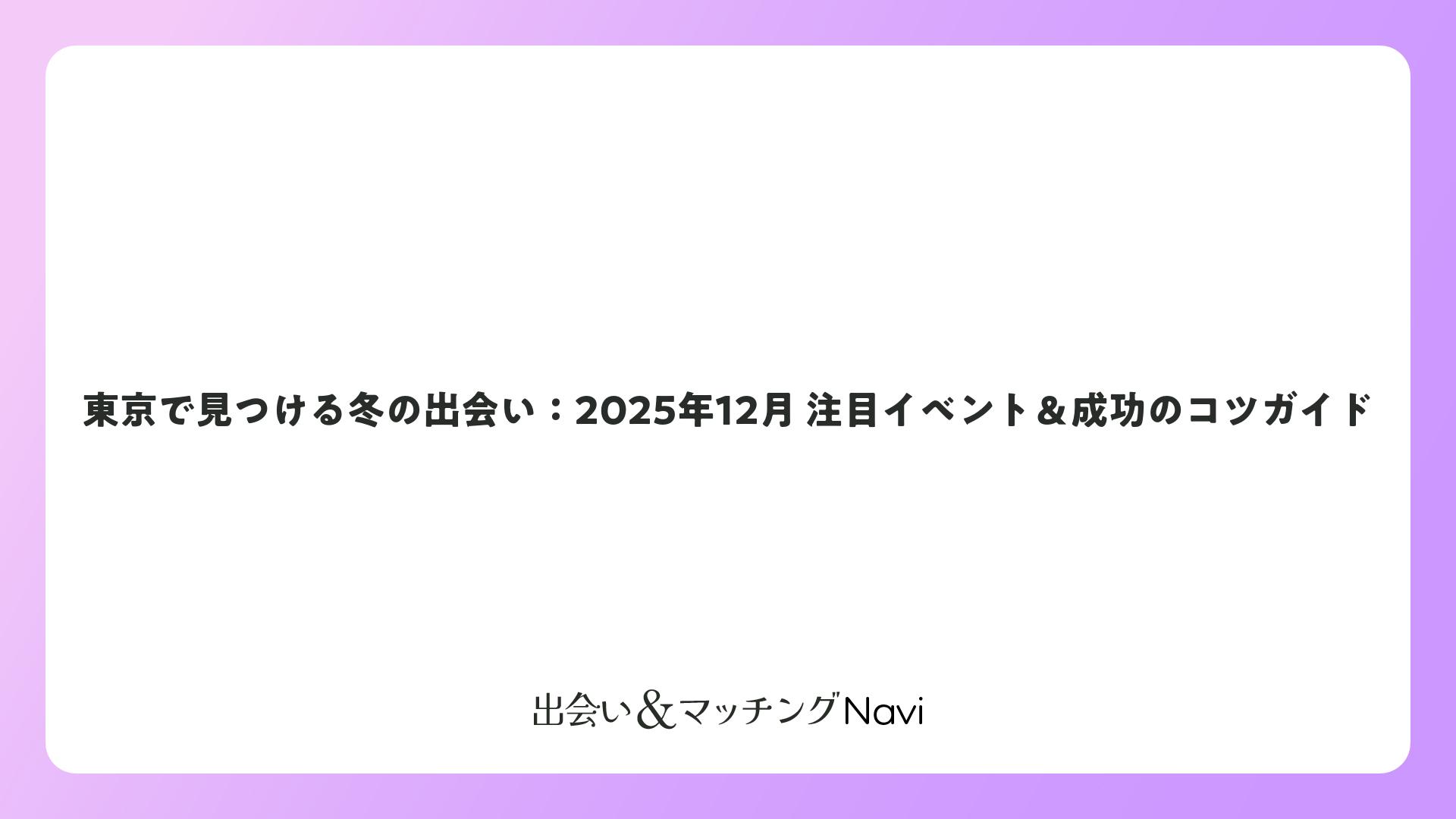 東京で見つける冬の出会い:2025年12月 注目イベント&成功のコツガイドをまとめました